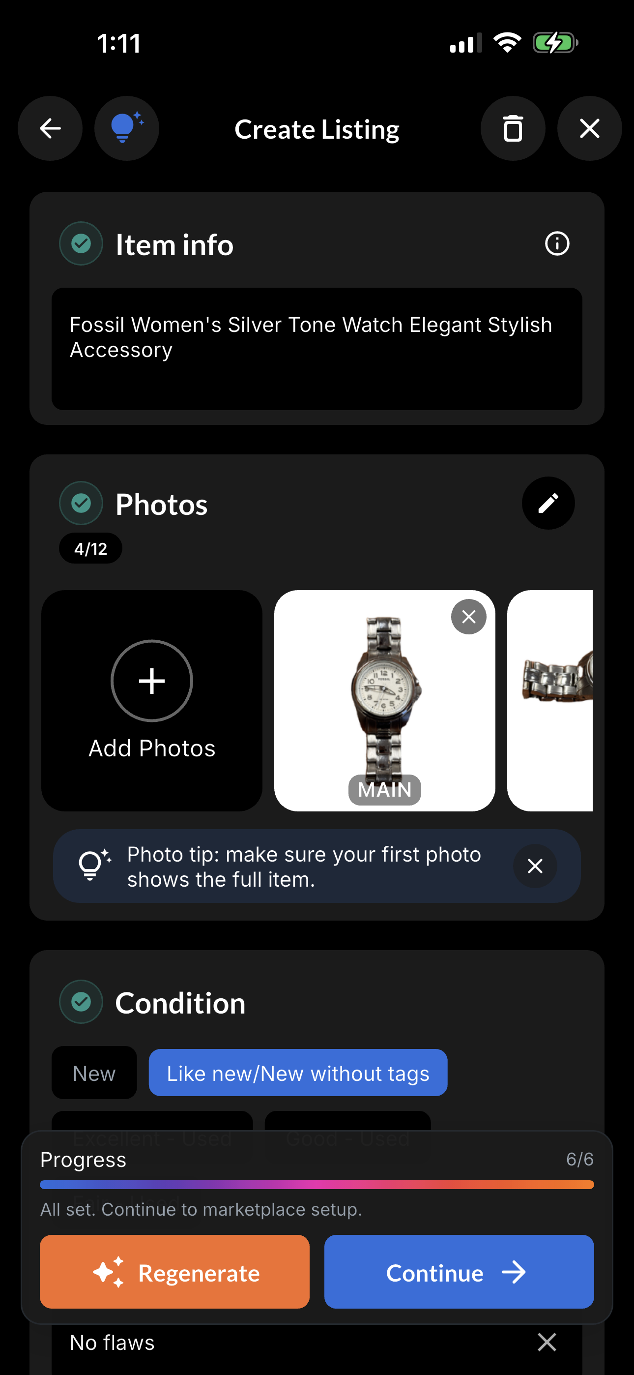 Titles, descriptions, photos, and specifics stay moving while Resylr's AI builds the draft.